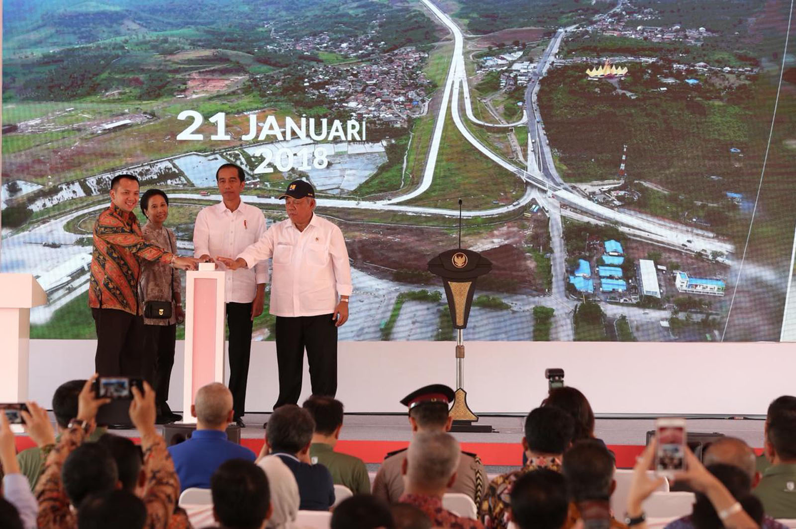 LAMPUNG SELATAN, PUPR Lampung- Gubernur Lampung M.Ridho Ficardo mendampingi Presiden Joko Widodo dalam peresmian jalan tol Lampung di segmen Pelabuhan Bakauheni – Simpang Susun Bakauheni dan Segmen Simpang Susun Lematang – Simpang Susun Kota Baru, Minggu (21/1/2018). Selain Presiden dan Gubernur Lampung Muhammad Ridho Ficardo ada dua M...